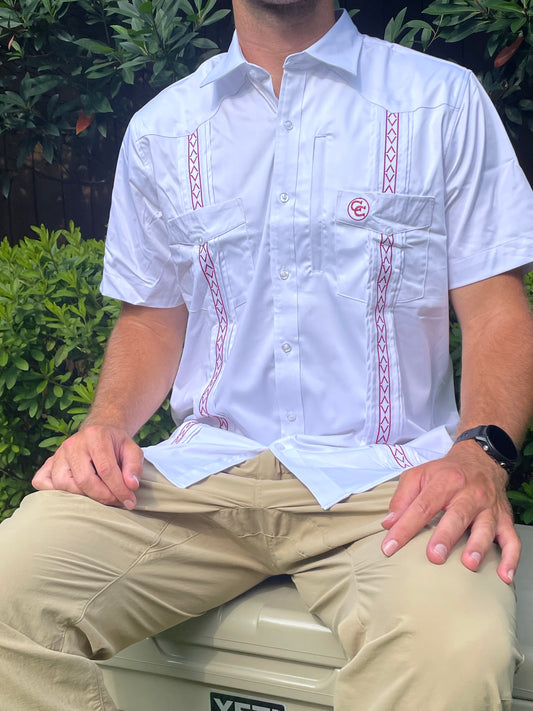 The CSTAT Cowboy Guayabera (White/Maroon)